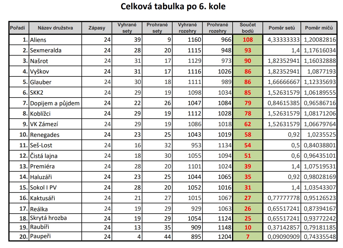 | 6. kolo | 24.03. 2024 | Rozpisy | Výsledky | Celková tabulka | CD ráno |