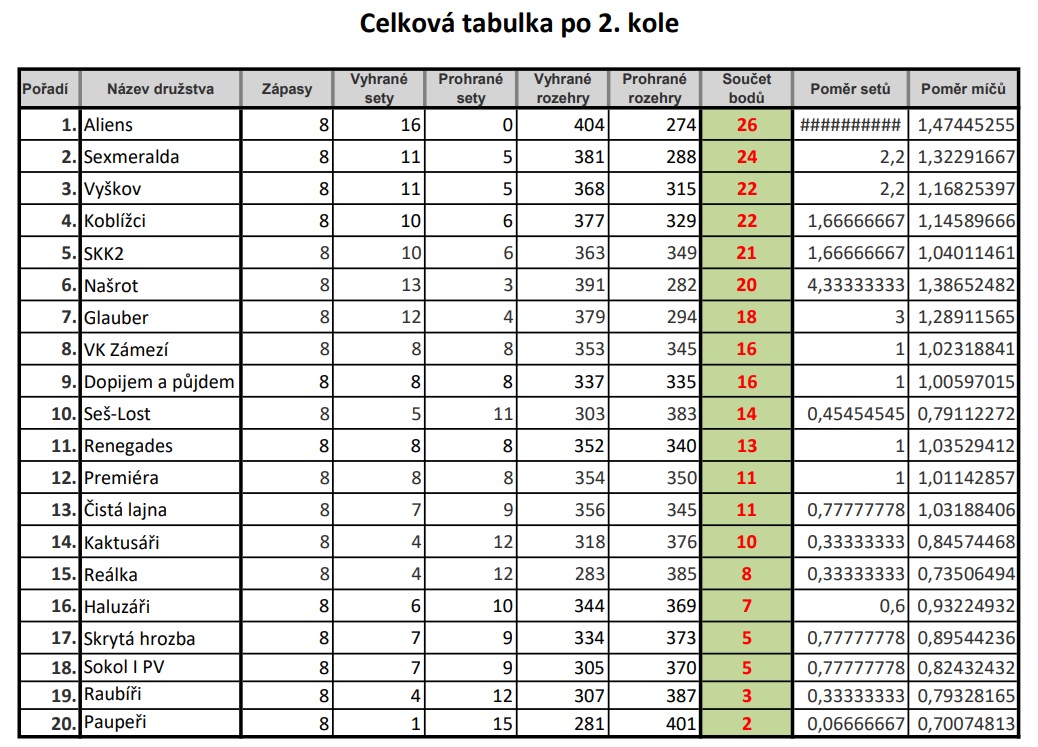 | 2. kolo | 22.10. 2023 | Rozpisy | Výsledky | Celková tabulka | CD ráno |
