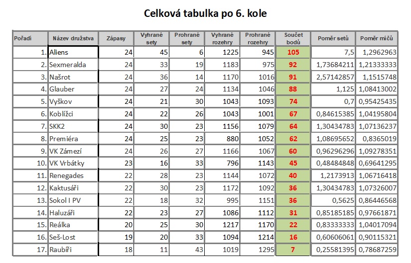 | 6. kolo | 26.03. 2023 CD 8:00 - 14:00 | Rozpisy | Výsledky | 26.03. 2023 CD 8:00 - 14:00 | Celková tabulka | |||
