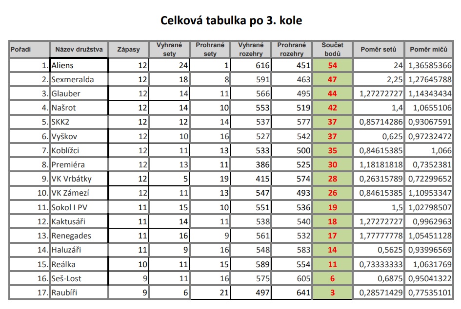 | 3. kolo | 11.12. 2022 AB 8:00 - 13:00 | Rozpisy | Výsledky | 11.12. 2022 CD 13:00 - 19:00 | Celková tabulka | |||
