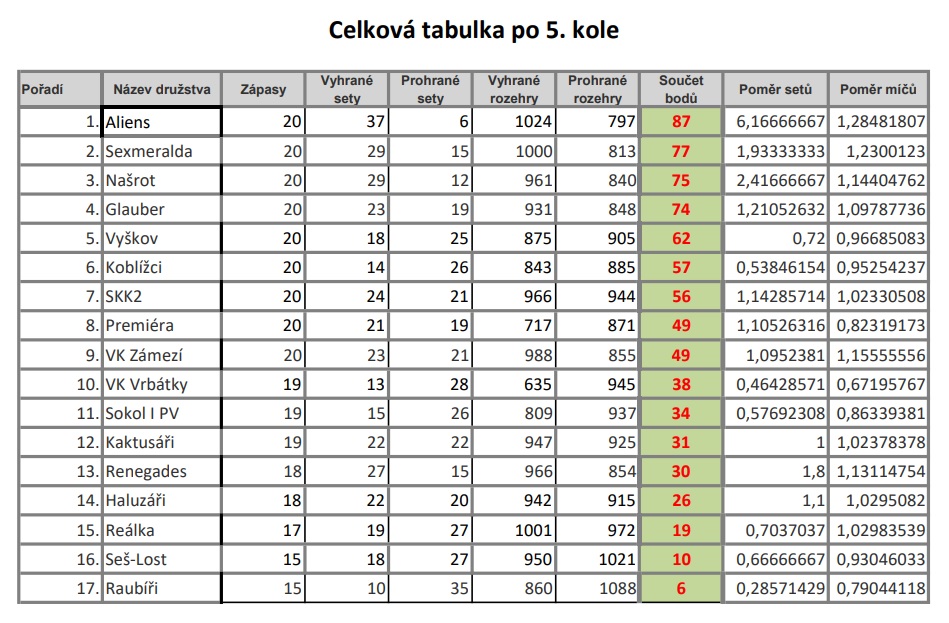 | 5. kolo | 26.02. 2023 AB 8:00 - 13:00 | Rozpisy | Výsledky | 26.02. 2023 CD 13:00 - 19:00 | Celková tabulka | |||